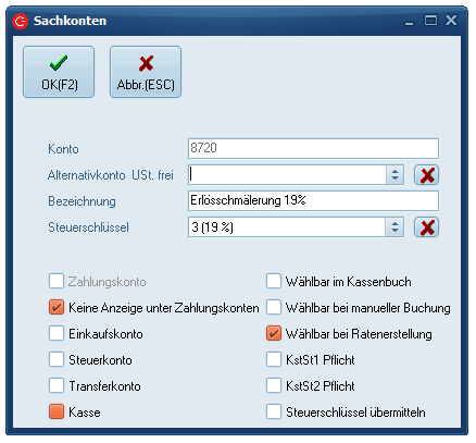 (z.B. 8720 Erlösschmälerung 19%) und legen Sie dies im C-Rent an.