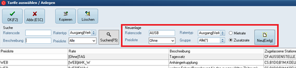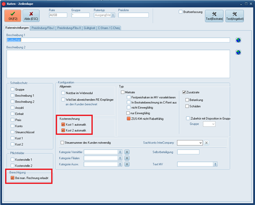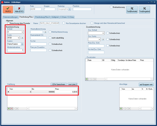 Im Standard ist die Rate „AUSB“ bereits im C-Rent angelegt. Alternativ können Sie diese Rate aber auch selbst erstellen. Relevante Einstellungen übernehmen Sie bitte aus den folgenden Screenshots: