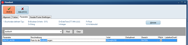 • Der Parameter SRATE_AUSB muss mit der Rate befüllt werden. Es kann nur eine Rate hinterlegt werden. Hier mit Rate „[Ohne]AUSB“.