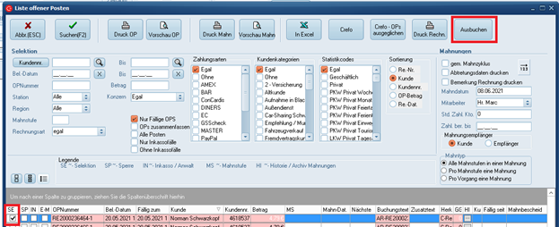 • Maske „Liste offener Posten“ – hier muss die gewünschte Position selektiert werden: