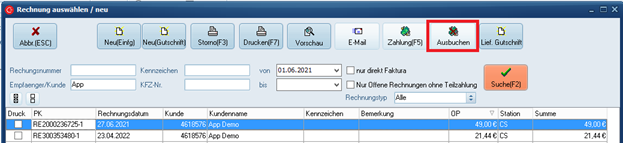 Die Funktion Ausbuchen steht Ihnen in folgenden Masken zur Verfügung: