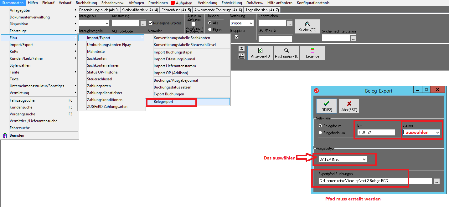 Klärung der Nutzung von "Beleg-Export" Anleitung nach Rücksprache mit der Programmierabteilung: