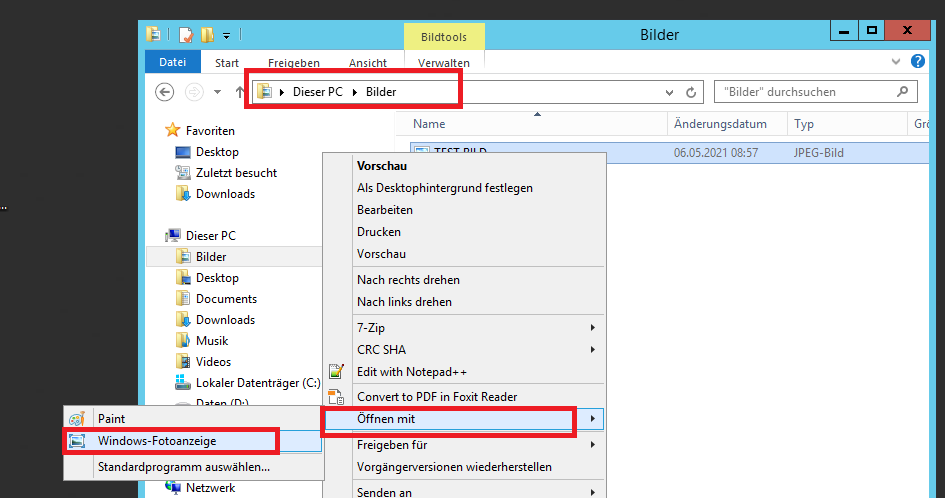 - der PC/Server muss, zum öffnen der Bilder über die Windows-Fotoanzeige verfügen.