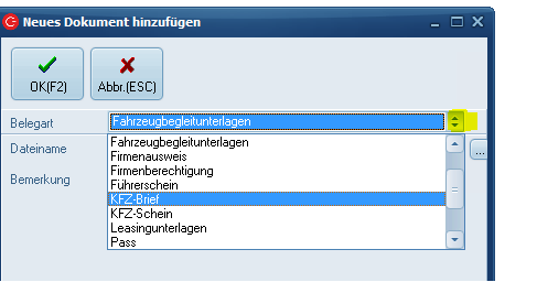 Wählen Sie eine passende Belegart im Drop/Down aus. (Die Belegarten können Sie unter Stammdaten – Dokumentenverwaltung – Belegarten verwalten.)
