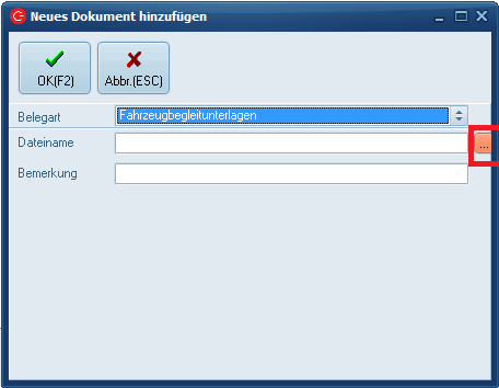 DMS - Handling manuelle Übernahme von Dokumenten in den Fahrzeugstamm