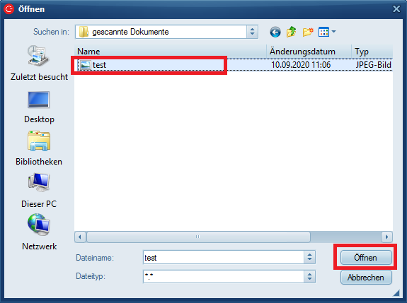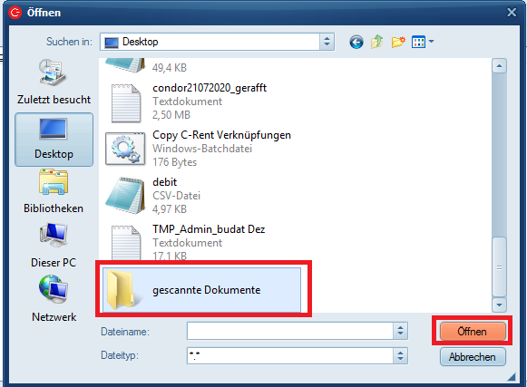 Wählen Sie hier nun den passenden Ordner, in unserem Beispiel „gescannte Dokumente“.