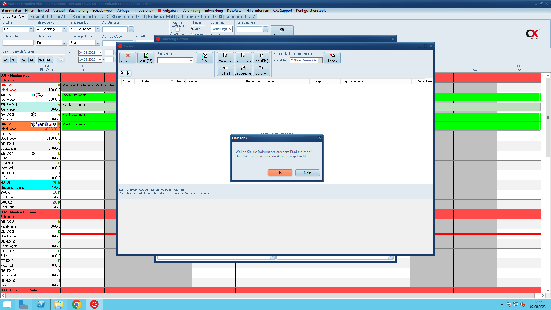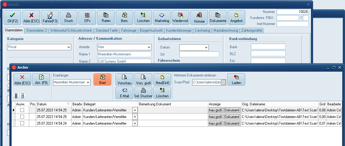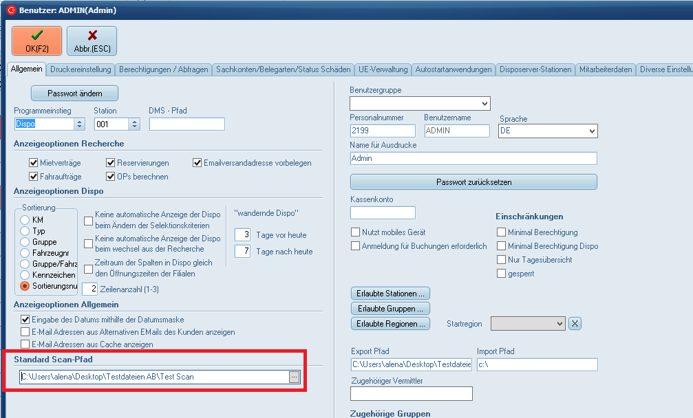 Zur Vereinfachung des Vorgangs kann im C-Rent Benutzer ein fester Scannpfad hinterlegt werden.
