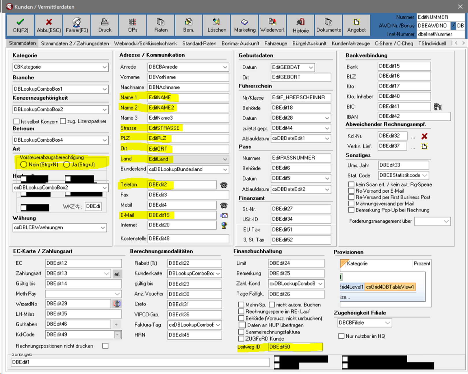 Stammdaten Station es zählen nur Einträge in Bank1 BIC IBAN // Bank 2 wird nicht verwendet.