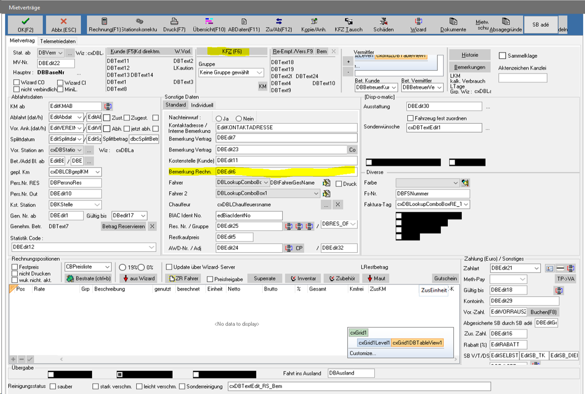 Diese werden in das Feld "ArtikelDescription" der Mietrate eingefügt.