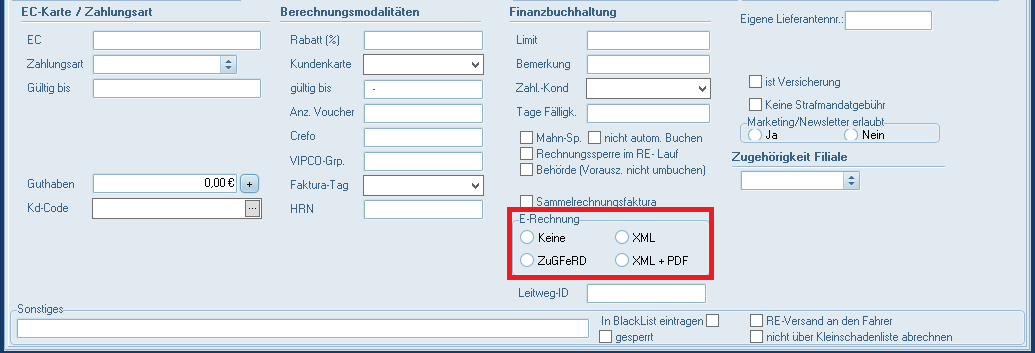 Bei Kunden die Zugferd vorher genutzt haben wird automatisch der Haken bei ZuGFeRD gesetzt.
