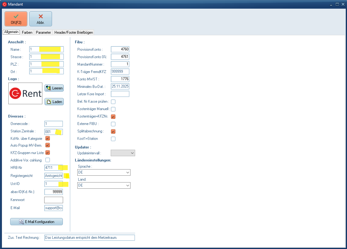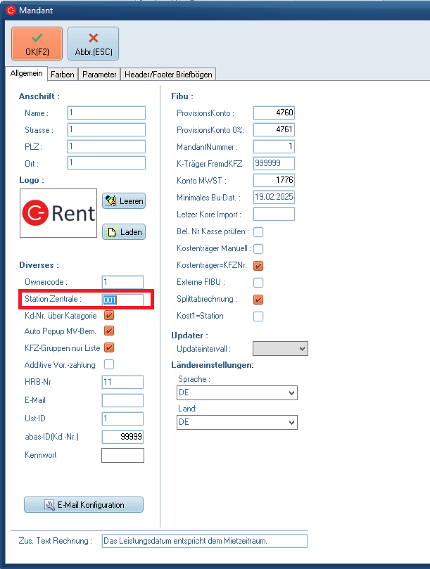 > dann greift C-Rent nur auf die Daten der im Mandant hinterlegten Zentrale zu!