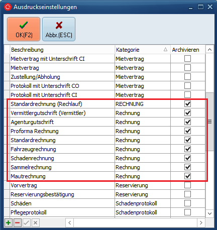 Dort kann man dann den Haken in der Spalte "Archivieren" setzen oder entfernen. In unserem Beispiel werden einfach alle Rechnungen archiviert.