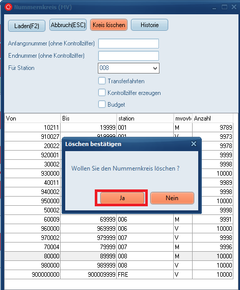 Da in unserem Fall die Station 008 bereits ein eigener Nummernkreis im C-Rent angelegt war wird dieser im Anschluss gelöscht.