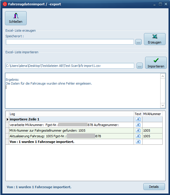 fDer Dateipfad wird nun übernommen und nach Klick auf Importieren werden die Daten im System übernommen.