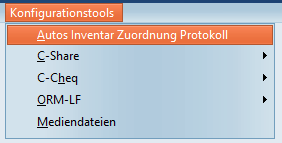 Als nächstes wird das Inventar den gewünschten Aktionen zugeordnet. Öffnen Sie hierzu die Tabelle "Autos Inventare Zuordnung Protokoll" über den Reiter "Konfigurationstools".