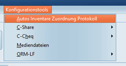 Als nächstes wird das Inventar den gewünschten Aktionen zugeordnet. Öffnen Sie hierzu die Tabelle "Autos Inventare Zuordnung Protokoll" über den Reiter "Konfigurationstools".