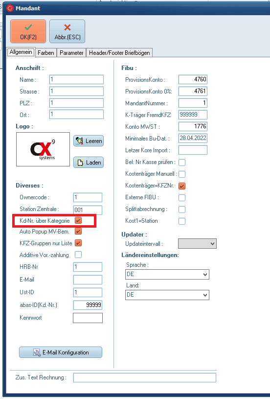 "Kd-Nr. über Kategorie" Hacken in Mandant setzen (wenn er nicht gesetzt ist, dann wird Option 1 benutzt) :