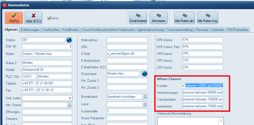 1. Kundennummern aus dem Stationsstamm übernehmen