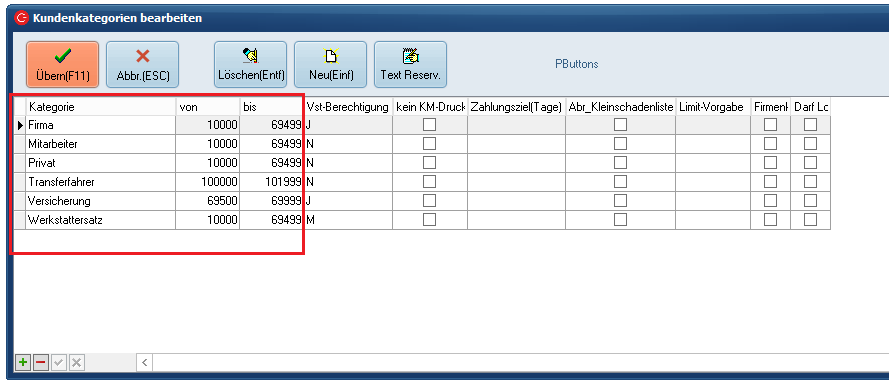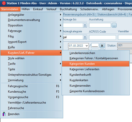 Die gewünschten Kundenkategorien können unter Stammdaten > Kunden/Lief. /Fahrer. > Kategorien Kunden