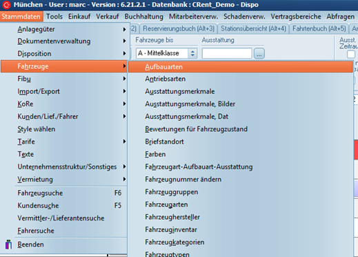 Die Tabelle Aufbauarten erreichen Sie über: "Stammdaten" -> "Fahrzeuge" -> "Aufbauarten".