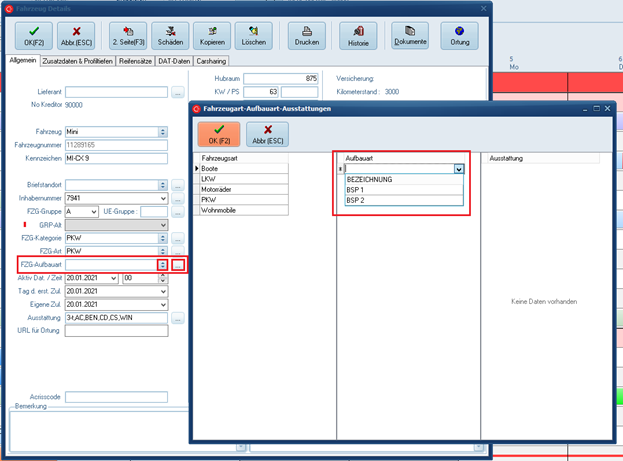 Es wurde eine neue Maske zur Pflege der Fahrzeugaufbauarten eingebracht.