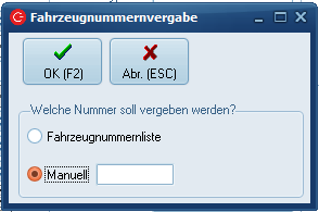 Beim Speichern des neuen Fahrzeuges erscheint dann folgendes Fenster, zur Eingabe der manuellen Nummer: