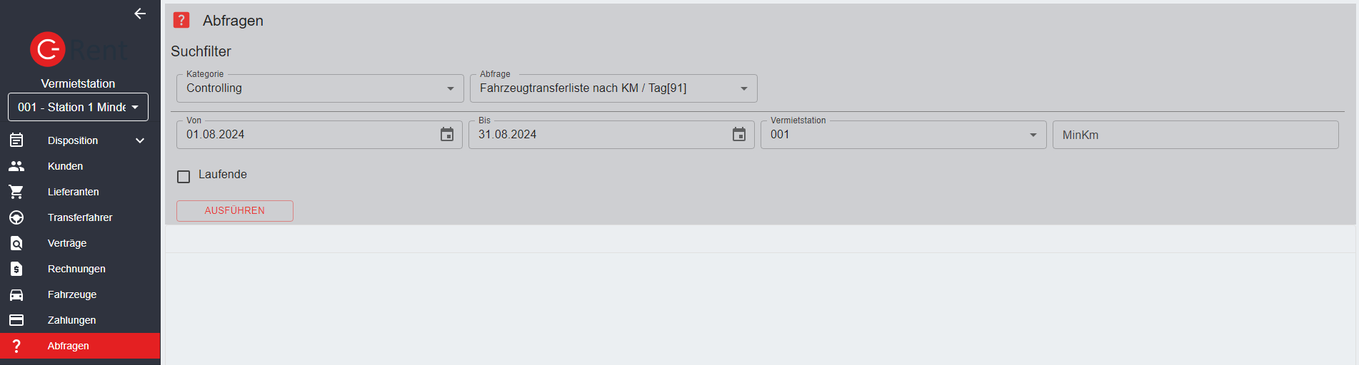 Ihre C-Rent Web-Software bietet Ihnen eine große Auswahl an Abfrage- und Auswertungsmöglichkeiten.
