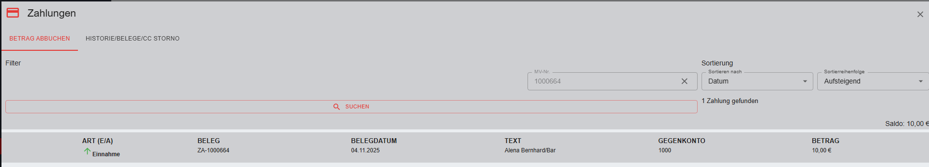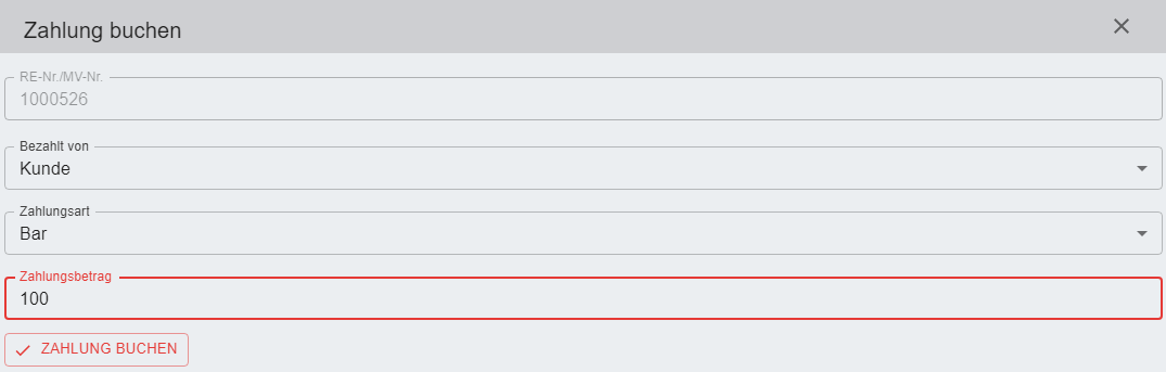 Ein Klick auf den Button führt zur Buchungsmaske, ein weiterer Klick auf "Zahlung buchen" löst die Buchung der Vorauszahlung aus.
