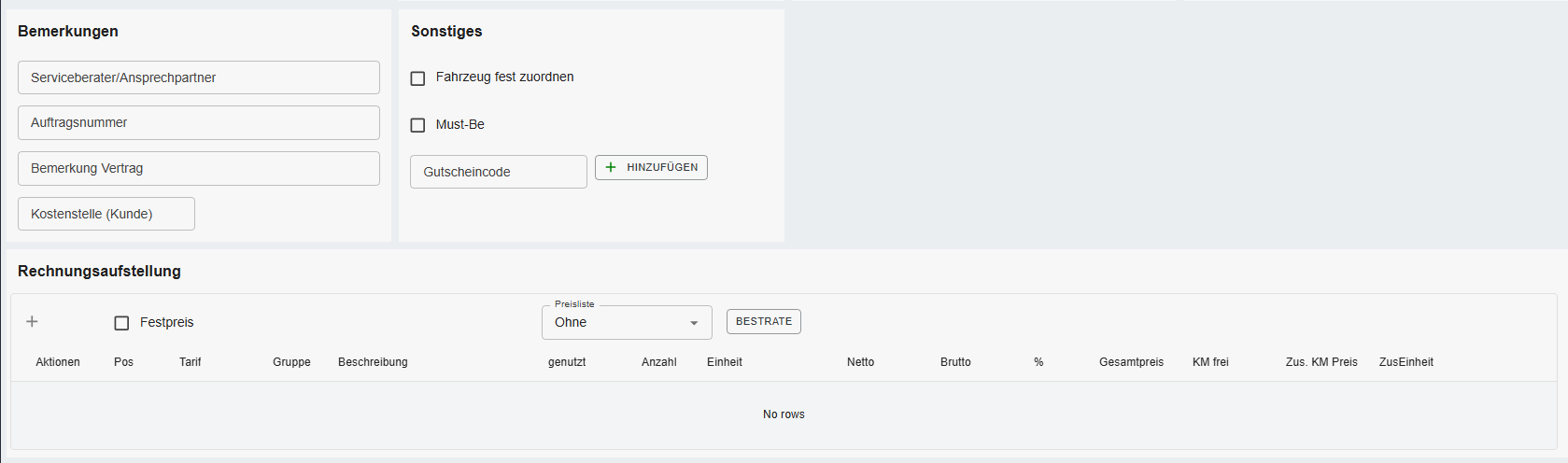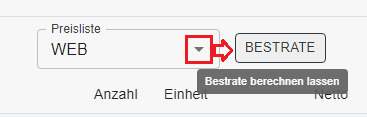 Falls mit Preislisten gearbeitet wird (wie in unserem Beispiel hier), dann muss erst die Preisliste gewählt werden, bevor man auf Bestrate klickt.