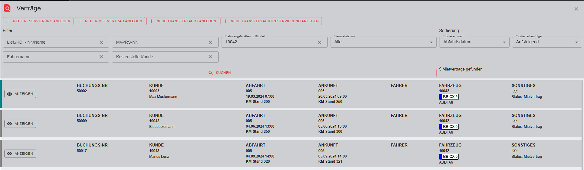 Fahrzeugreservierung / Mietvertrag