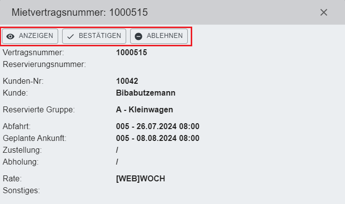 Fahrzeugreservierung / Mietvertrag