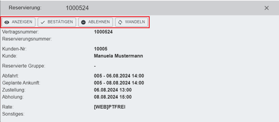 Ein Linksklick auf den Vorgang Fahrzeugreservierung zeigt das zugehörige Menü:
