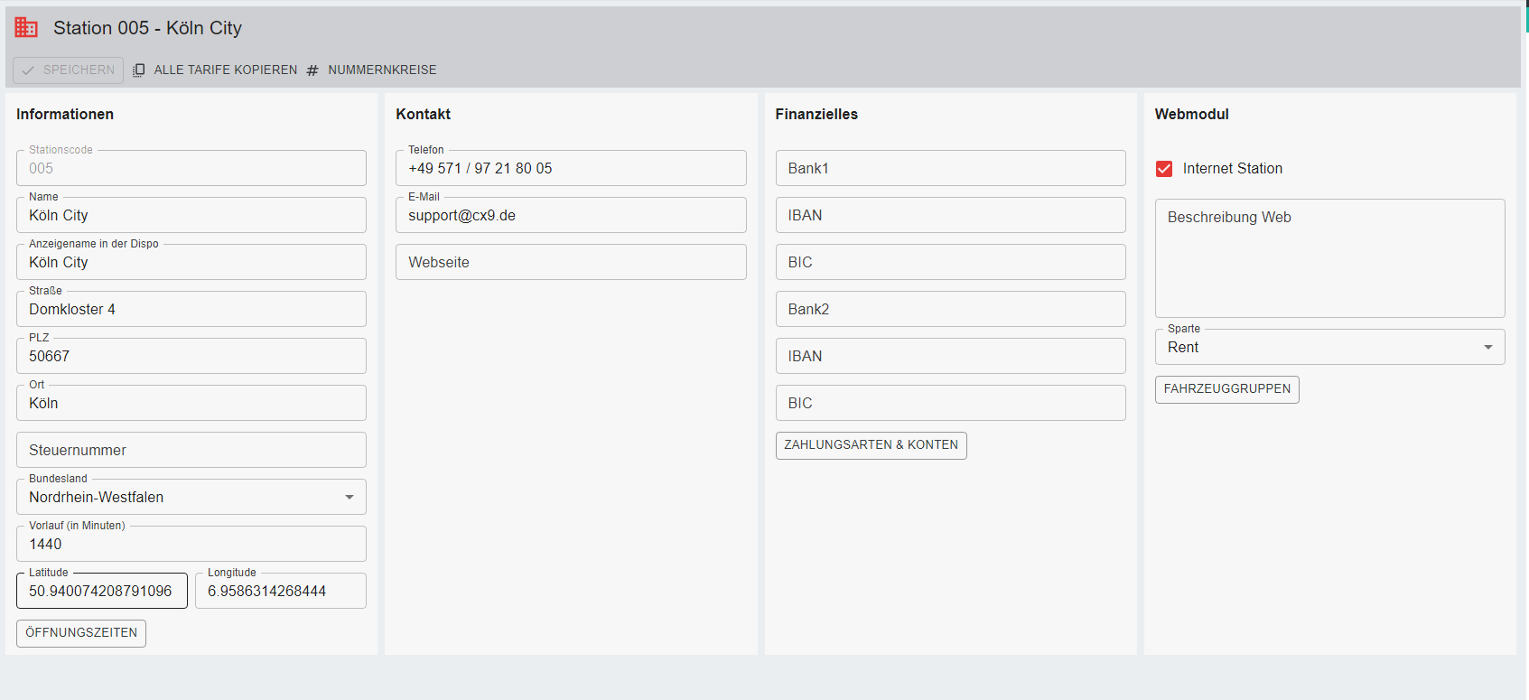 Hier wird Standort der Station konfiguriert. Im ORM wird bei Station eine Karte angezeigt, diese kommt aus Googel Maps und berechnet sich anhand der hinterlegten Daten im Filialstamm.