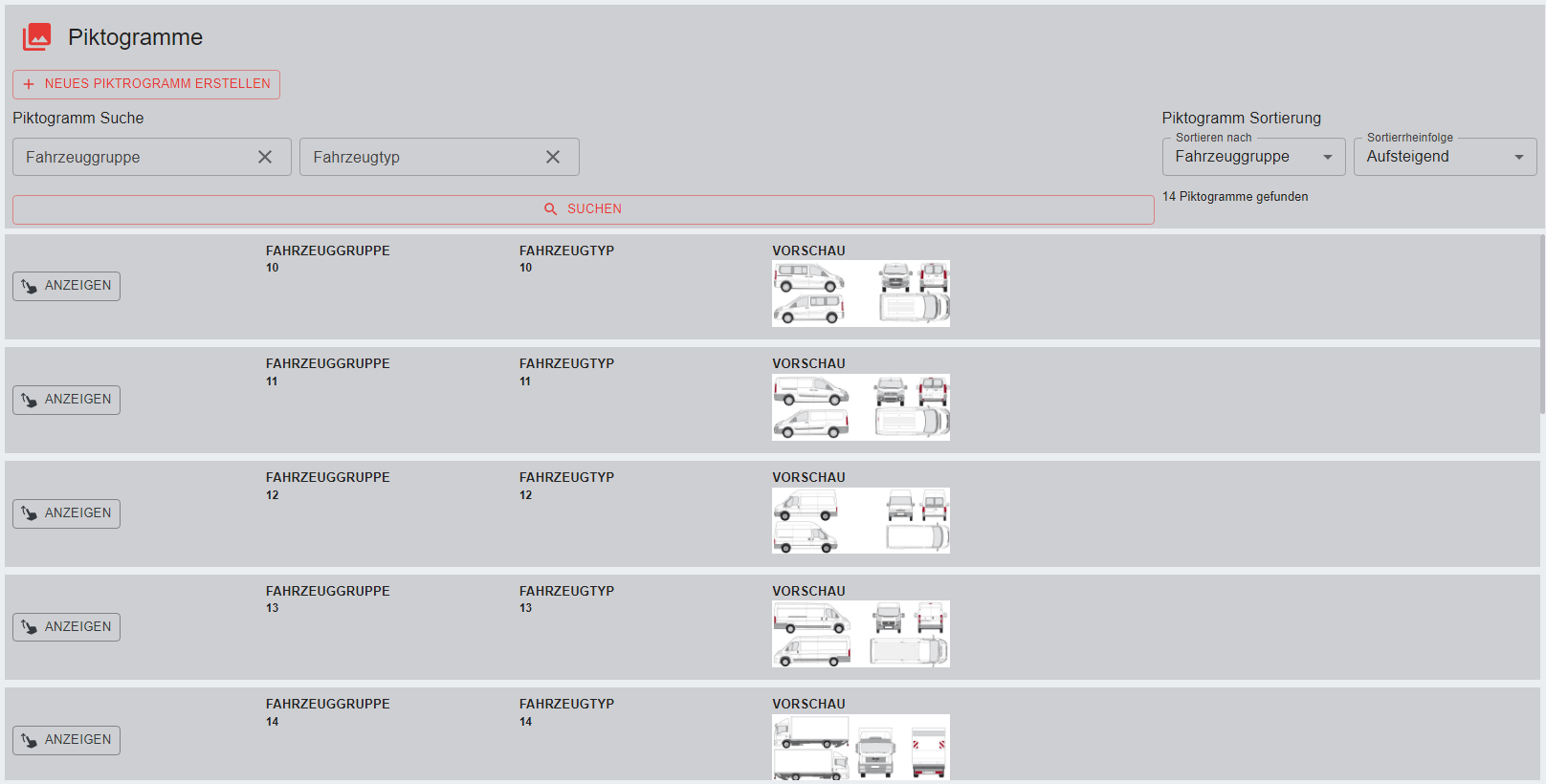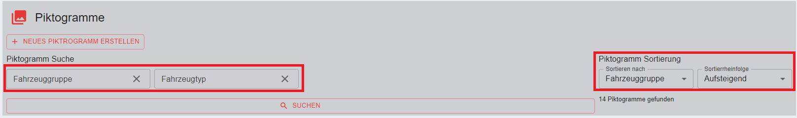 - Sortierung nach Fahrzeuggruppe oder Fahrzeugtyp