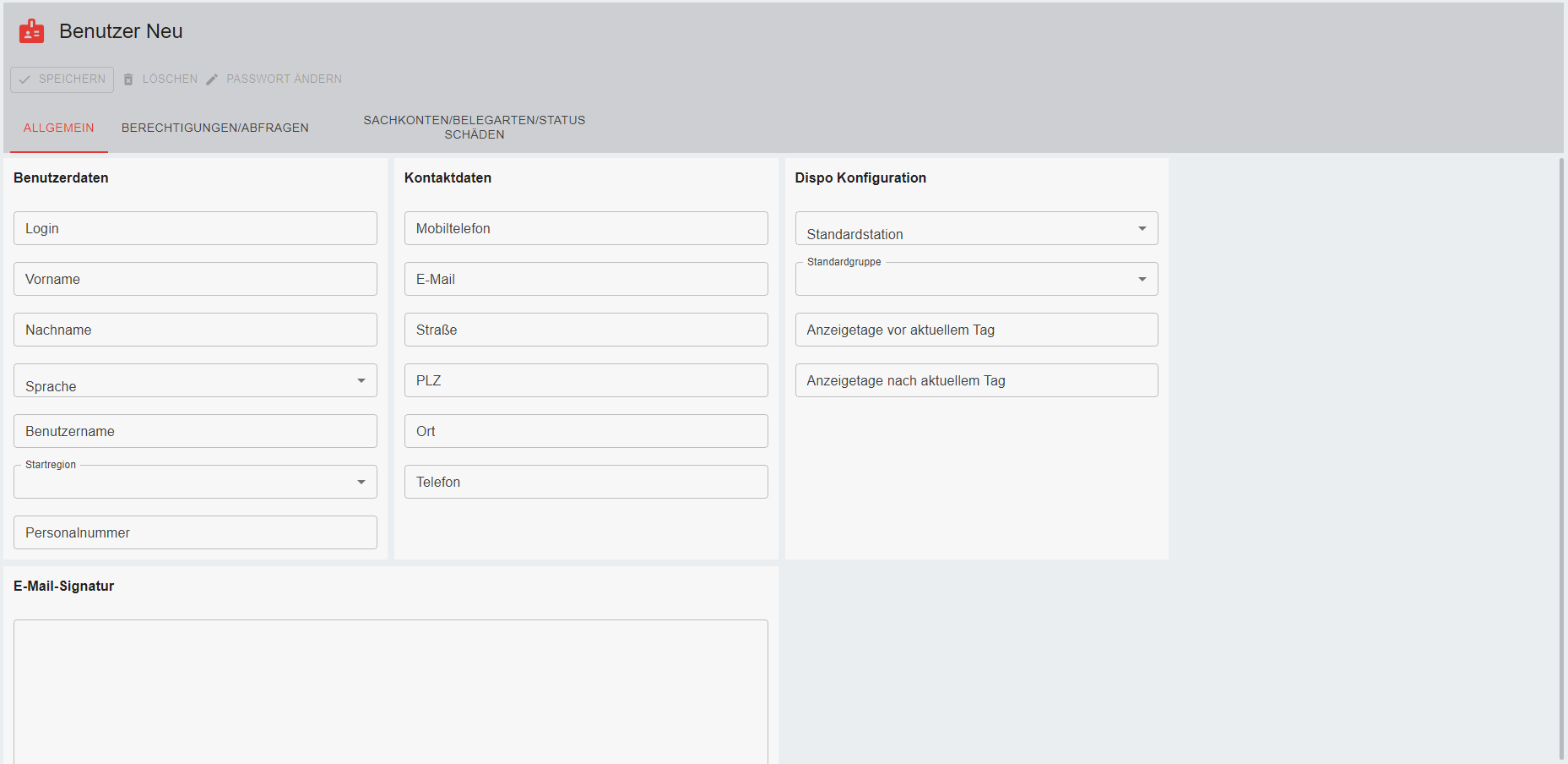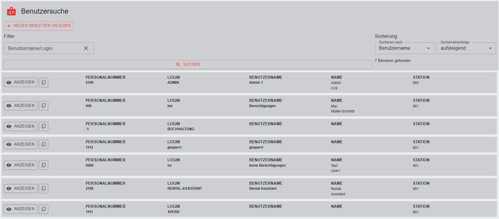 Die Rechte des angemeldeten Users können die angezeigten Bereiche und Funktionen ebenfalls einschränken.