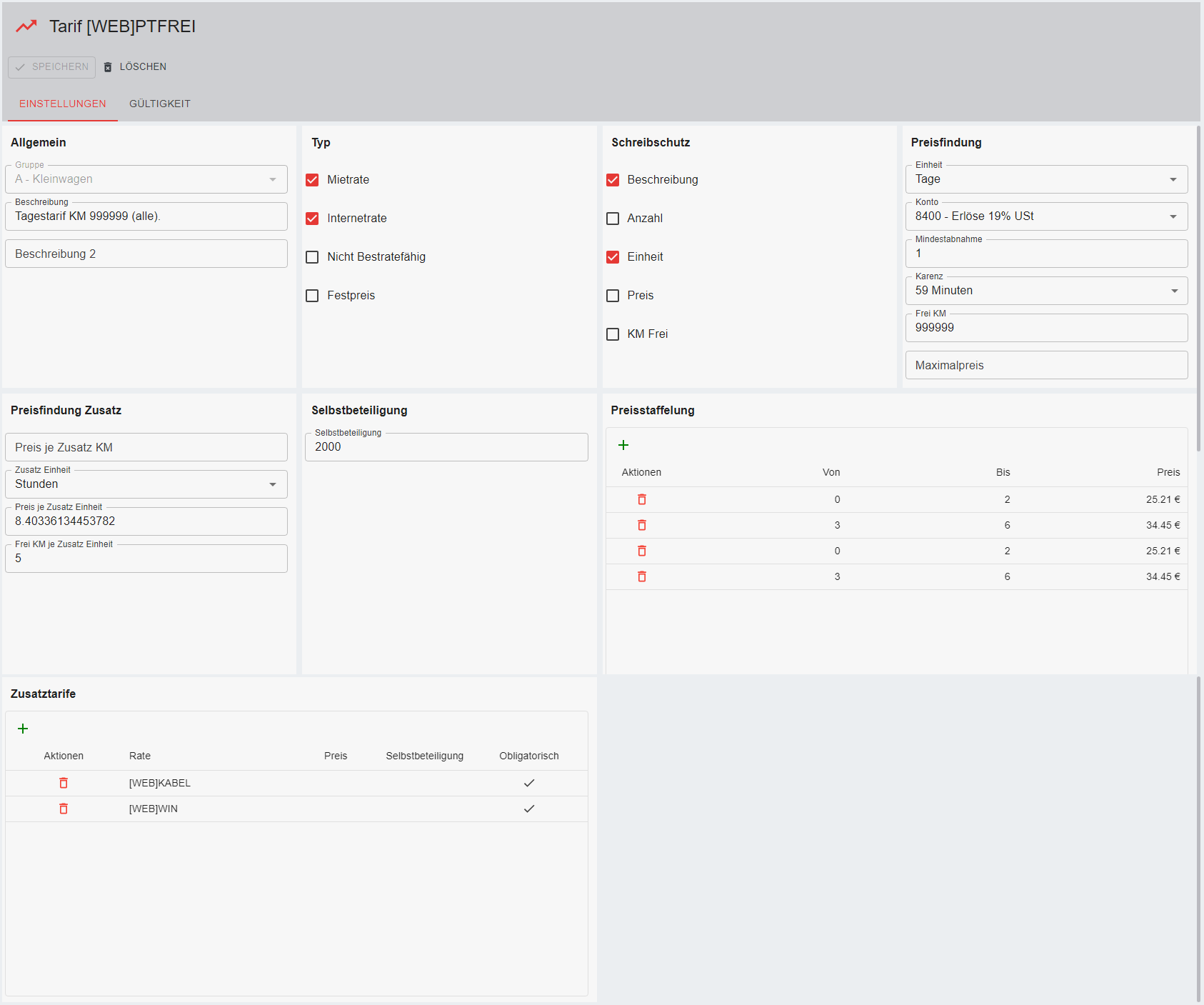 - Bleibt das Feld leer bei GS TYP "MOBILITY" und MIT Kundenzuordnung dann sollte dort keine max. Verwendung eingetragen werden, damit der gesamte Betrag aufgebraucht werden kann (ggf. in mehreren Mieten als Teilbetrag). Wenn die Verwendung auf 1 steht kann er nur einmal verwendet werden- egal, ob er dabei die gesamte Summe aufbraucht oder nicht.