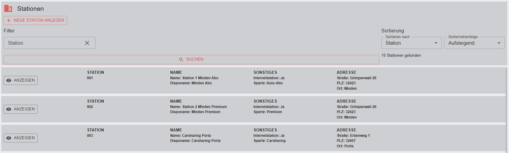 Hier können neue Stationen angelegt und bestehende Stationen verwaltet werden.