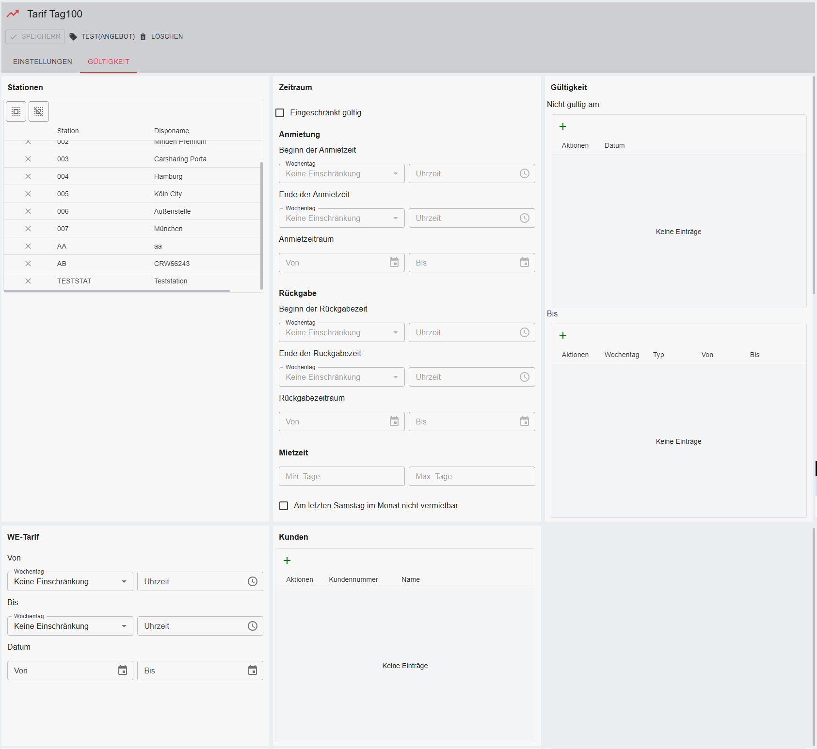 Bei Aktivierung der Station steht zusätzlich die Option "aktivieren (alle Raten)" zur Verfügung, wird der Button geklickt, werden alle Tarife für die Station frei gegeben.