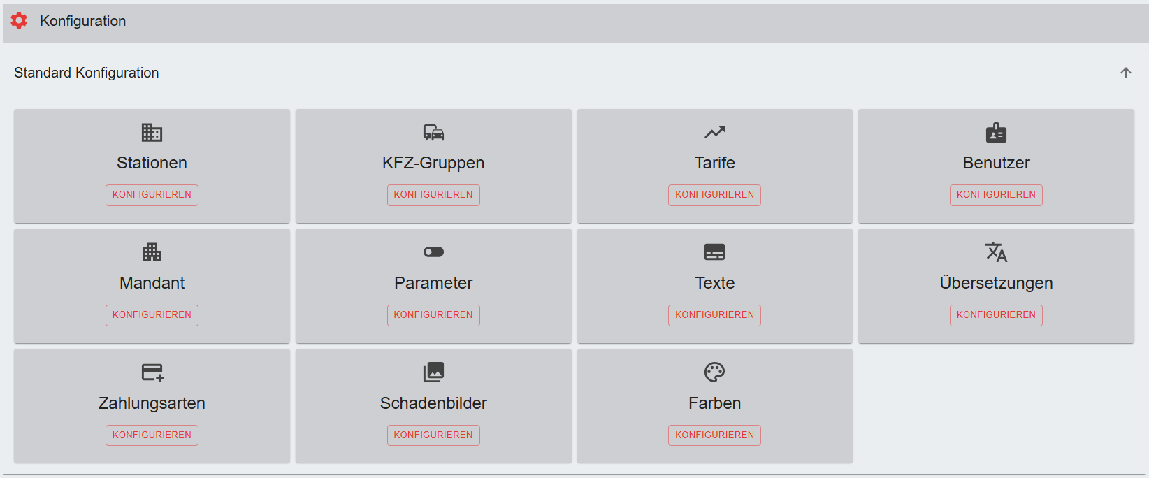 Die hier angezeigten Konfigurationen sind zum Teil Abhängig von den aktiven Modulen. Ist z.B. das Modul Onlinereservierung LF nicht aktiv, wird der Punkt "ORM Konfiguration" nicht angezeigt.