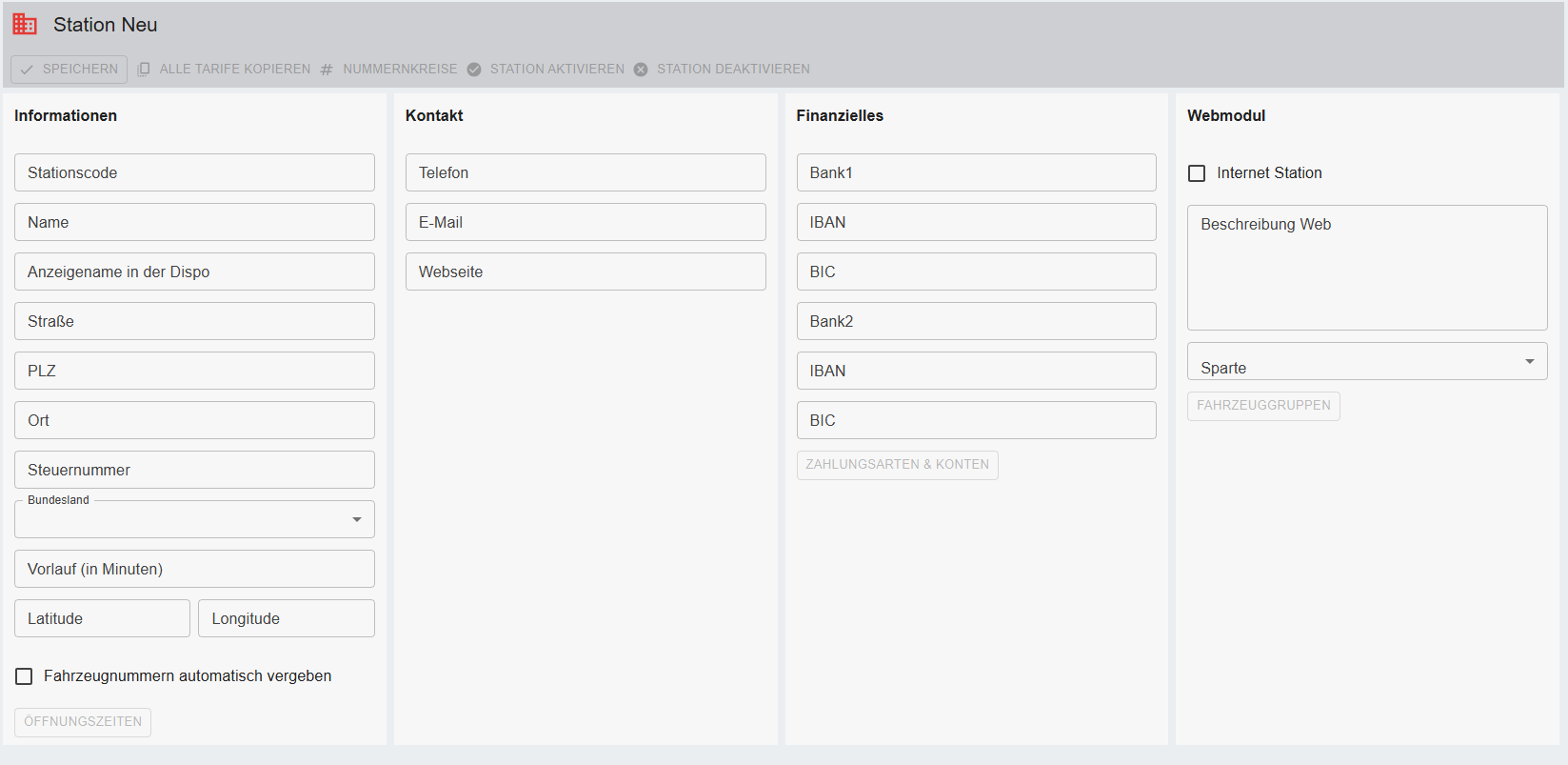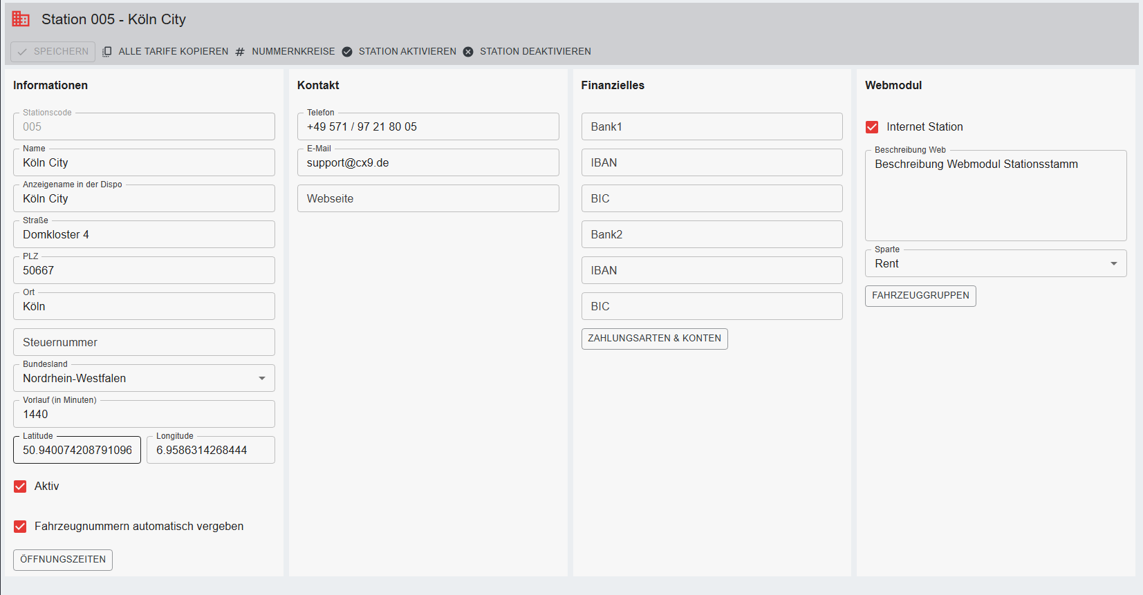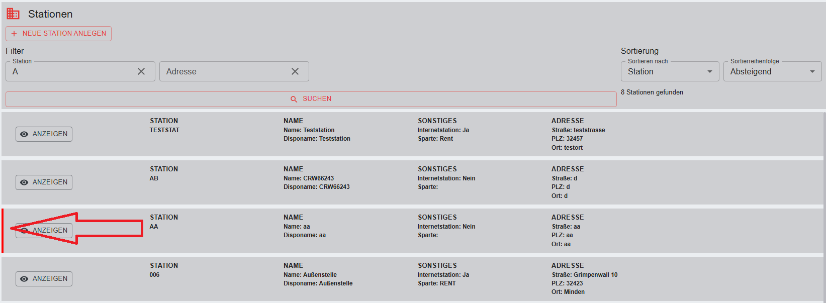 Per Klick auf "ANZEIGEN" gelangt man in den Stationsstamm. Hier können Daten bei Bedarf geändert werden.