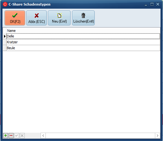 Tragen Sie hier Ihre Kurzbeschreibungen für Schäden, z.B. Delle, Kratzer ein.