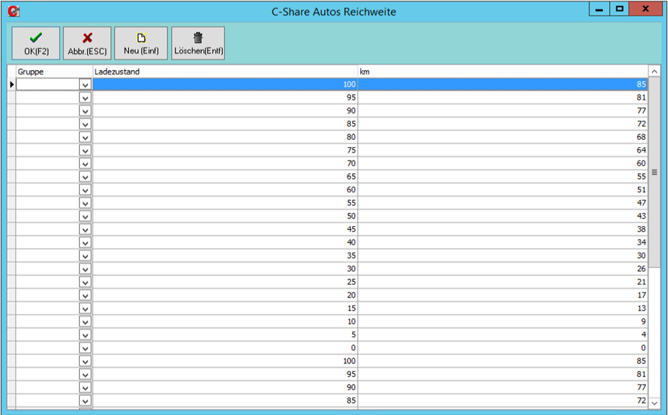 Reichweite kann hier je FZG-Gruppe gesteuert werden