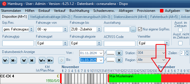 1149744 Die Anzeige eines Laufenden Vertrags in der Dispo auch außerhalb des zeitlichen Bereichs (Eingebracht in Aufgabe 1147175) wurde angepasst, so dass diese nur für überfällige Verträge gilt, also nicht mehr für Verträge, die innerhalb der vereinbarten Mietperiode liegen.
