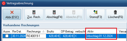 1149702 Es wurde das Problem behoben, das in der Dispo beim abgerechneten Zeitraum ein Tag zu wenig dargestellt wurde. Ausschlaggebend für die Anzeige in der Dispo ist das Bis zum Datum in der Vertragsabrechnungsmaske.