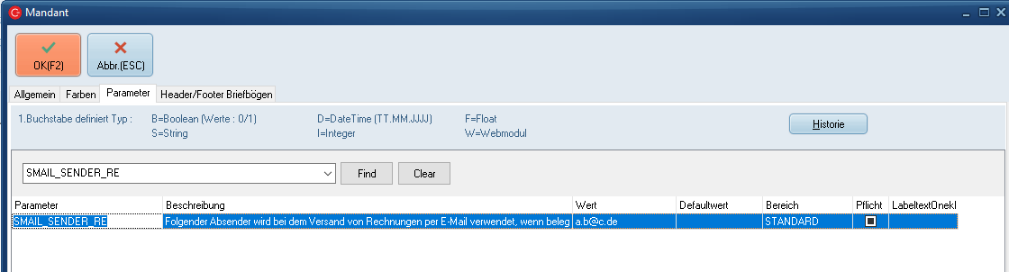 1147137 Über den Parameter SMAIL_SENDER_RE kann beim Versand einer Rechnung der Absender der E-Mail vorbelegt werden