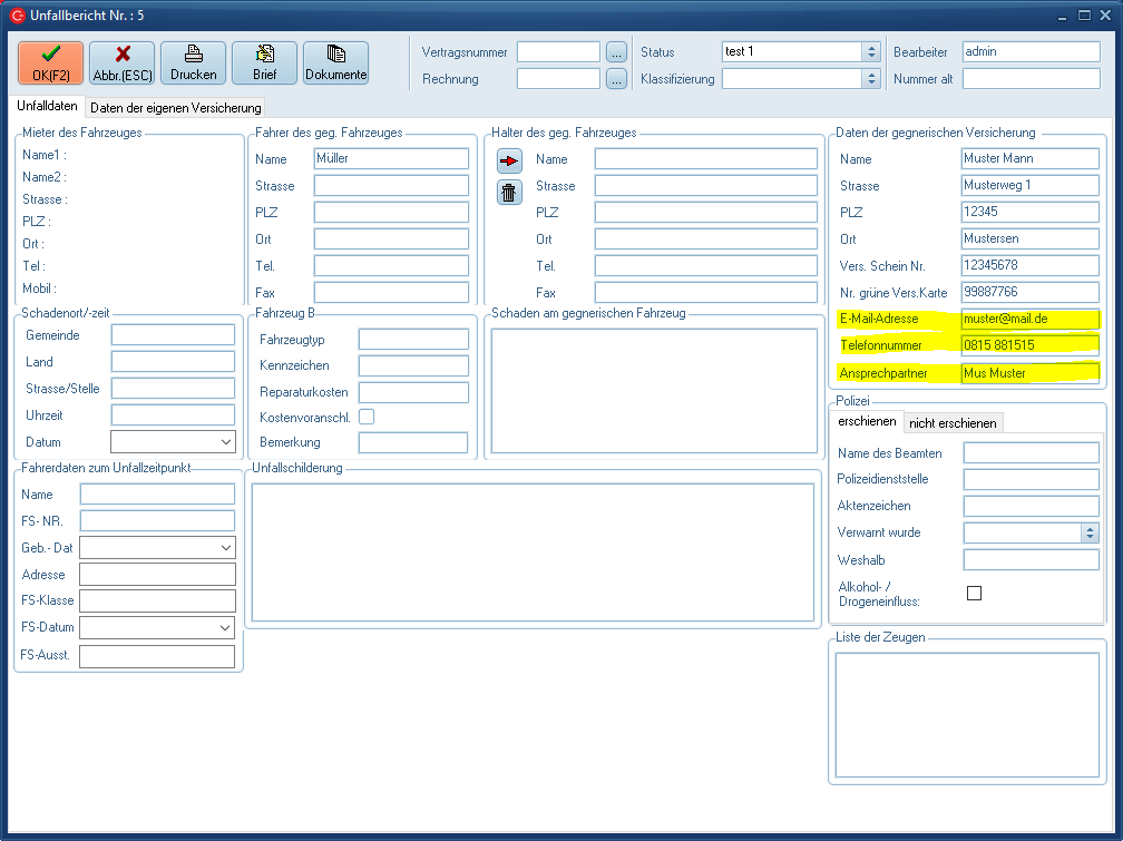 1152011 Die Maske Unfallbericht wurde um 3 Felder erweitert.