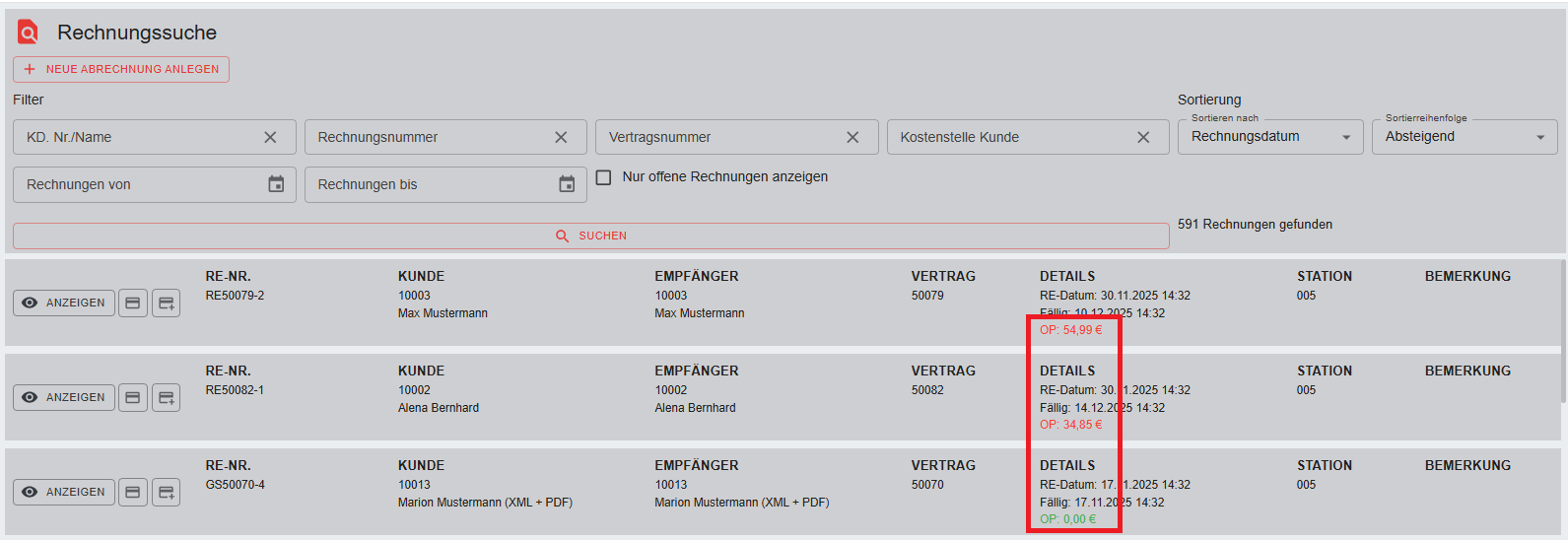 1151226 Die Rechnungen werden in der Rechnungssuche nun nicht mehr doppelt angezeigt.