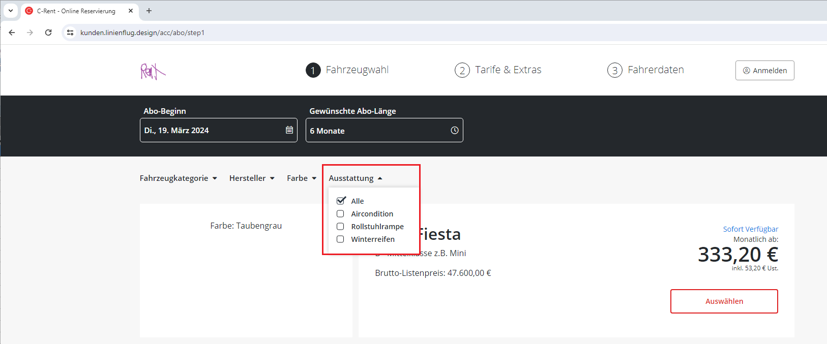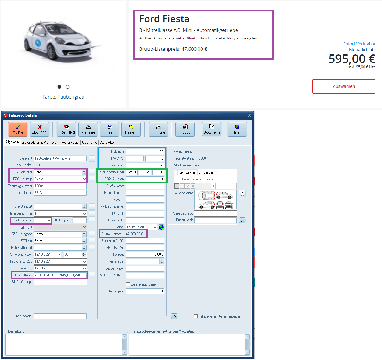 - Im Auto Abo wird die neue Eingabe von FZG- Hersteller und FZG-Herstellertyp benötigt.