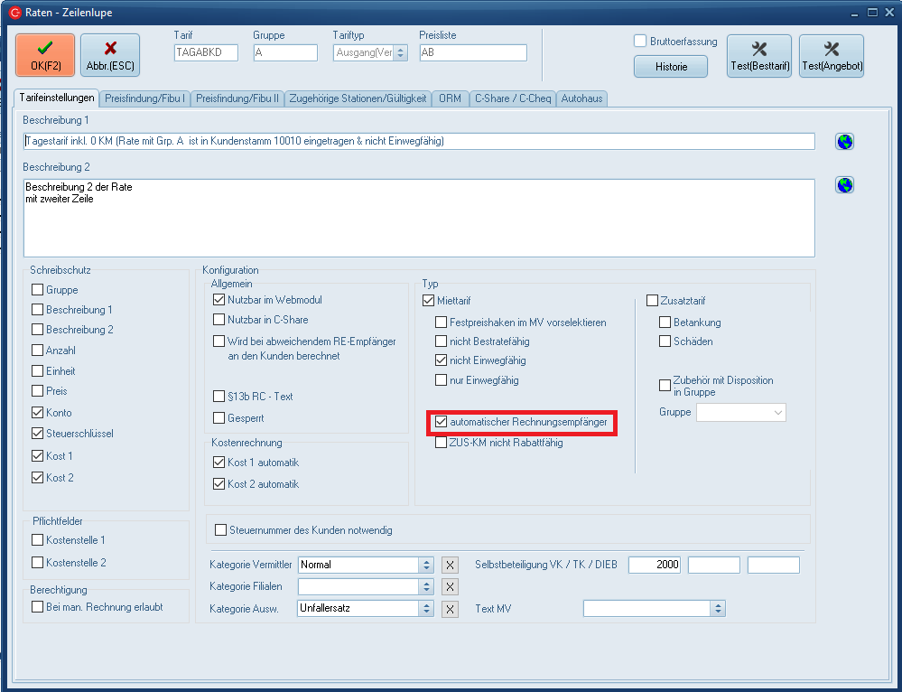 In der Tarifkonfiguration muss der Haken "Automatischer Rechnungsempfänger" gesetzt sein.
