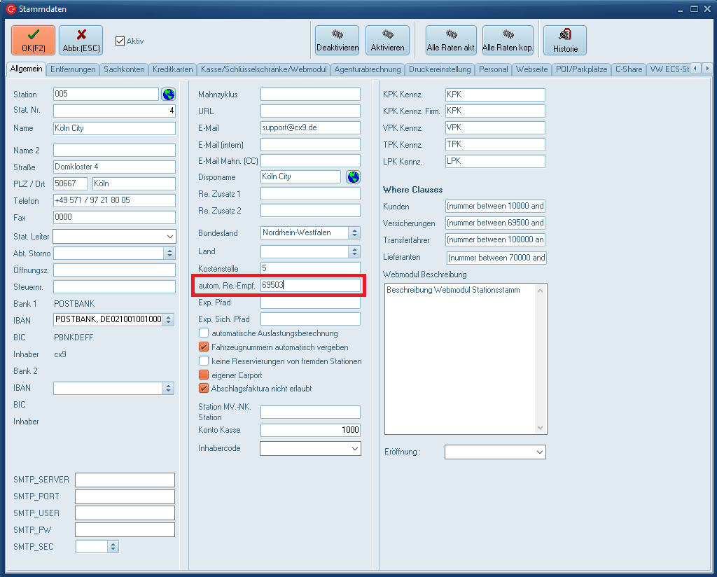 Pro Stationsstamm kann ein Lieferant als Automatischer Rechnungsempfänger hinterlegt werden.